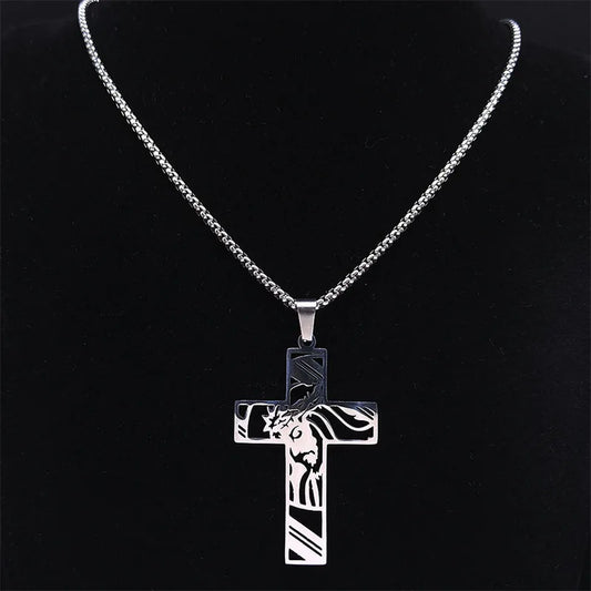 Collar de Cruz con Corona de Espinas en Acero Inoxidable