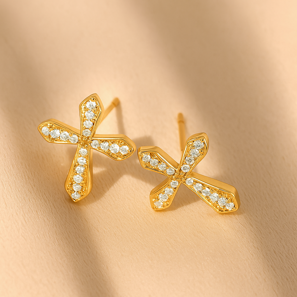 En cada detalle de estos pendientes de cruz se refleja la luz y el propósito de la fe. Confeccionados con delicada zirconia cúbica que captura y refleja la luz, estos pendientes son un símbolo de gracia divina y protección constante.